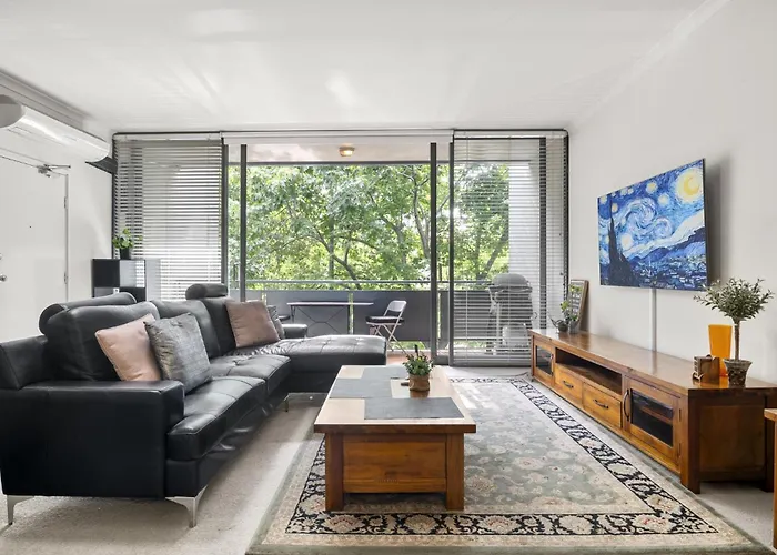 The 1-room Central 2-Bed Pad With Tennis Court, Pool & Gym Melbourne apartment includes a patio and is located approximately a 20-minute walk from St Paul's Anglican Cathedral. Featuring an outdoor swimming pool and a fitness area, this spacious apartment is situated just near the Marquis of Linlithgow Monument.